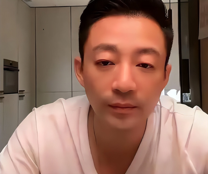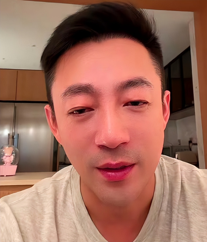 从背景能看出他在家里,穿着一件浅灰色家居服,眼眶有些发红,凌晨三点还没有睡。